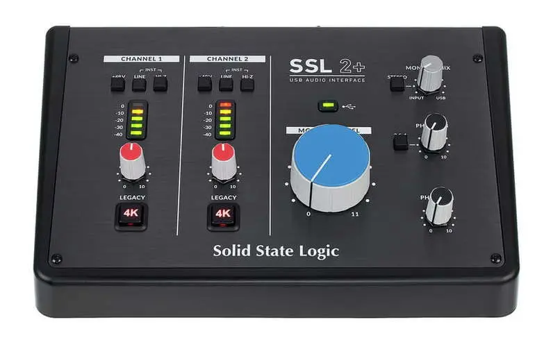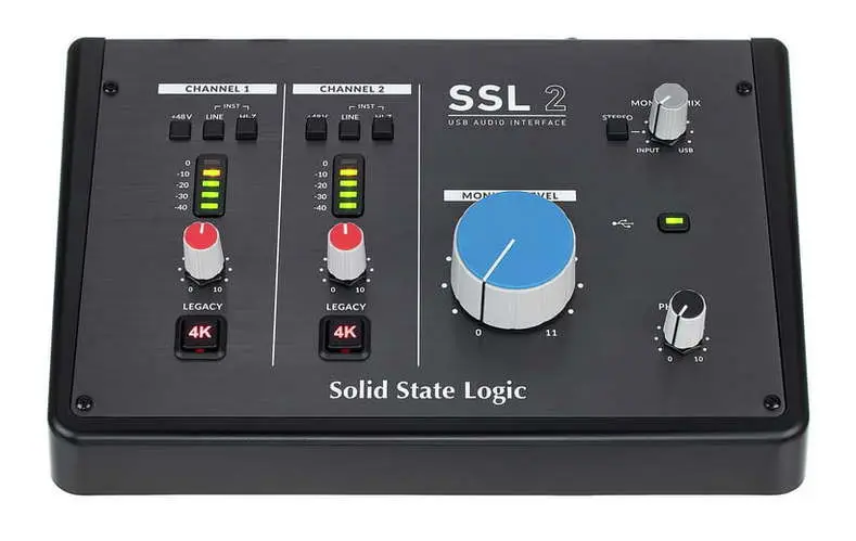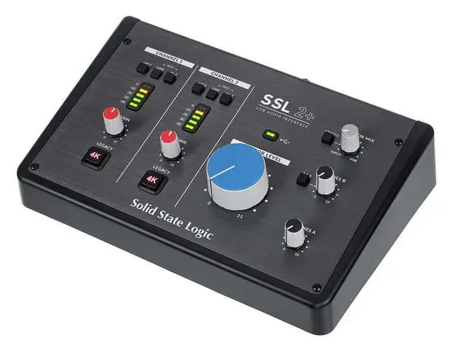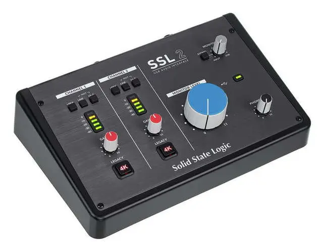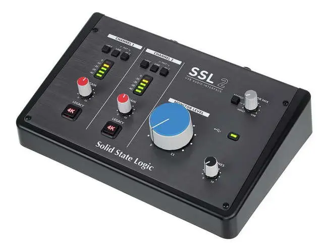Solid State Logic SSL 2 MKII — USB-аудиоинтерфейс, оснащен двумя фирменными микрофонными предусилителями SSL, которые обеспечивают до 64 дБ усиления с минимальным уровнем шума, что позволяет записывать аудиосигналы с высоким уровнем детализации и чистоты. Особенностью SSL 2 MKII является аналоговый режим Legacy 4K, разработанный на основе знаменитой консоли SSL 4000, который добавляет винтажную теплоту и насыщенность звуку. Два независимых наушниковых выхода позволяют одновременно использовать несколько пар наушников для различных миксов. Устройство также поддерживает подключение различных источников — от микрофонов и инструментов до синтезаторов и внешних эффектов через балансные TRS выходы, которые могут работать в качестве CV-выходов для управления модулярными синтезаторами. В комплекте идет пакет программного обеспечения SSL Production Pack.