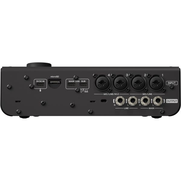 Yamaha URX44 BK — многофункциональный USB-C аудиоинтерфейс и компактный цифровой микшер, ориентированный на студийную запись, стриминг, подкастинг и живые выступления, сочетающий в себе высококачественные аналого-цифровые преобразователи, фирменные микрофонные предусилители Yamaha URX, встроенный DSP-процессор и автономную многодорожечную запись на карту памяти microSD. Устройство выполнено в прочном настольном корпусе с интегрированным 4,3-дюймовым сенсорным экраном, физическими энкодерами и крупным регулятором, что обеспечивает прямой тактильный контроль параметров без постоянного обращения к компьютеру. Архитектура URX44 рассчитана на одновременную работу с несколькими источниками сигнала — микрофонами, инструментами, линейными и мобильными устройствами с гибкой маршрутизацией, аппаратным мониторингом без задержки и возможностью использования как центрального узла гибридного сетапа для записи, стриминга и live-использования. Встроенные DSP-эффекты и поддержка Dual USB делают интерфейс самодостаточным решением как для студии, так и для мобильных сценариев.
