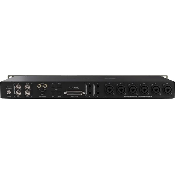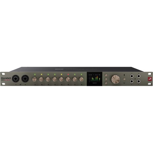 Antelope Audio Discrete 8 Oryx Synergy Core — USB-C интерфейс с расширенной матрицей коммутации 26 x 38, спроектированный для сложной студийной интеграции. Аналоговый тракт устройства базируется на восьми дискретных транзисторных преампах с усилением до 65 дБ и архитектуре АЦП/ЦАП с динамическим диапазоном до 130 дБ на мониторной шине (THD+N: -115 дБ). Устройство оснащено 64-битной системой тактирования AFC 4-го поколения, обеспечивающей прецизионную синхронизацию цифровых потоков. Мощная гибридная платформа Synergy Core (2 x DSP + 1 x FPGA) берет на себя всю нагрузку по моделированию эффектов в реальном времени, позволяя использовать цепочки из компрессоров, эквалайзеров и кабинет-эмуляторов с минимальной аппаратной задержкой, не превышающей 1 мс, независимо от буфера DAW.