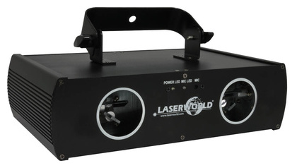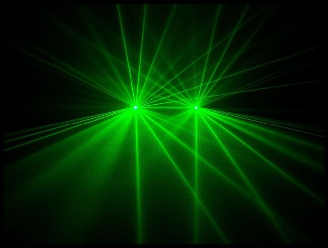 Мощный зеленый лазер Laserworld EL-D100G отличается двойным лучом, что значительно усиливает визуальный эффект.