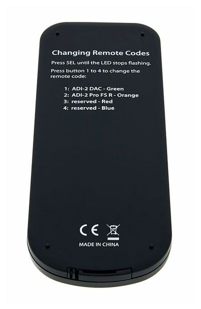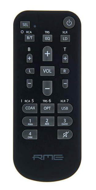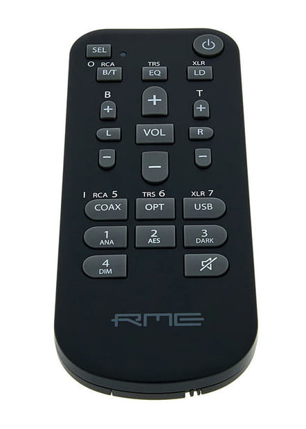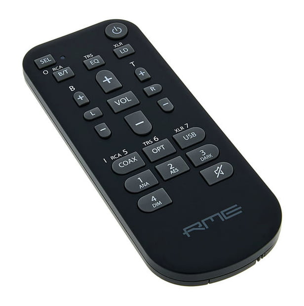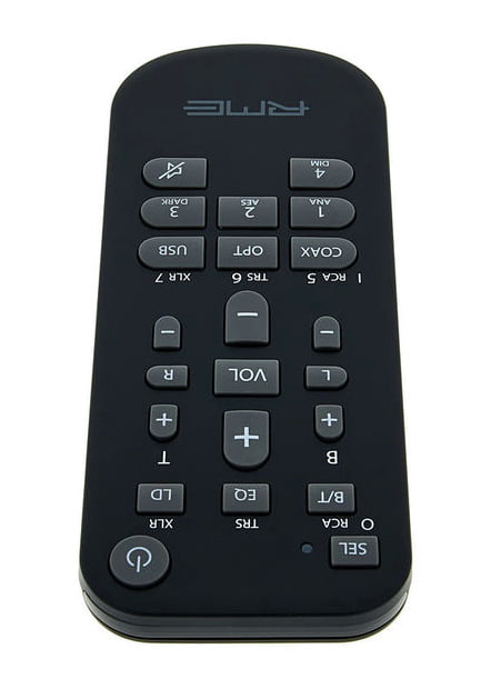 RME MRC Multi Remote Control — инфракрасный пульт дистанционного управления для RME ADI-2 DAC, ADI-2 Pro FS R Black Edition и ADI-2/4 Pro SE. Пульт предназначен для полного контроля аудиоустройств, включая включение/выключение, регулировку громкости и баланса, активацию эквалайзера, управление басами и высокими частотами, включение/выключение функции Loudness, переключение входов и множество пользовательских команд. Корпус выполнен из алюминия с лазерной гравировкой, а питание обеспечивается от одной литиевой батарейки типа CR2032.