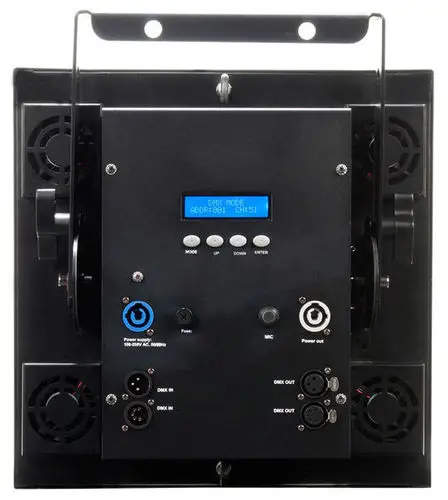 В 17-канальном DMX режиме можно контролировать каждый сканер отдельно и выбирать 10 паттернов, скорость, поворот и строб для каждого выхода.