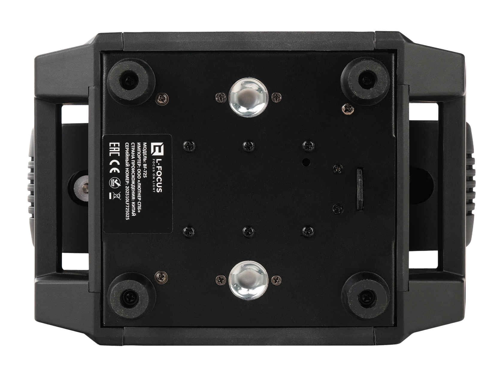 LFocus BF-725 — моторизованная световая «голова» формата Wash с источником света RGBW на базе 7 светодиодов 4-в-1 мощностью 25 Вт каждый, предназначенная для сценического освещения, клубных инсталляций, концертных площадок. Прибор управляет пикселями, позволяя адресовать каждый светодиод индивидуально для построения динамических цветовых и графических эффектов. Оптическая система основана на точном объективе с плавным электронным линейным зумом в диапазоне 6°–60°, обеспечивая как плотный сфокусированный луч, так и равномерную заливку. Реализованы 8/16-битное разрешение панорамирования и наклона, функция памяти позиции с автоматическим восстановлением после сбоя, а также интеллектуальная система термоконтроля с постоянным мониторингом температуры. Конструкция рассчитана на эксплуатацию внутри помещений (IP20) и оснащена эффективной системой охлаждения с пониженным уровнем шума.