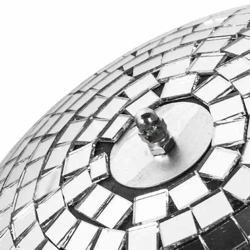 Зеркальный шар (Mirror Ball) подвешивается к потолку в центре танцевального поля и при помощи специального мотора шар начинает вращаться. Эффектные зеркальные блики на стенах получаются в результате подсветки специальными прожекторами, лучи которых под определенным углом направлены непосредственно на сам шар. Блики на стенах могут перемещаться с различной скоростью, придавая помещению необычную «космическую» атмосферу. Шары бывают разных диаметров и имеют различный вес — от этого зависит и выбор мотора для конструкции. Это эффектное украшение любой дискотеки может быть не только в виде шара. Необычные блики на стенах получаются и с помощью зеркального устройства в виде сферы или куба.