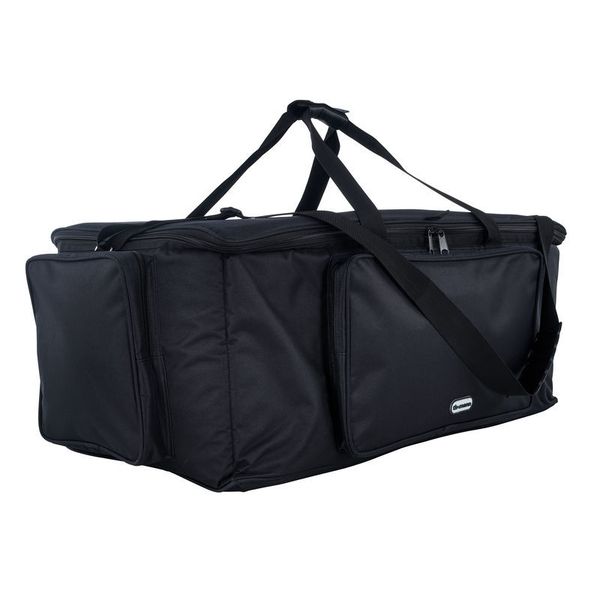 Millenium E-Drum Bag — транспортировочная сумка для электронных ударных установок. Корпус выполнен из плотного многослойного синтетического материала с влагозащитной обработкой, устойчивого к механическим нагрузкам. Основная особенность конструкции — амортизирующий слой толщиной 20 мм, равномерно распределенный по всему объему сумки. Он эффективно защищает чувствительные элементы (пэды, триггеры, электронные модули) от ударов и вибраций при транспортировке. Внутренняя поверхность выполнена из мягкого нейлонового материала, предотвращающего появление царапин. Сумка оснащена десятью регулируемыми внутренними отсеками и одним большим внутренним отделением для размещения стоек или аксессуаров. Дополнительно предусмотрено три внешних кармана для кабелей, адаптеров, педалей и других мелких принадлежностей. Для переноски предусмотрены усиленные ручки с амортизацией и съемный плечевой ремень с мягкой накладкой. Высокая прочность швов, усиленная молния с двойным бегунком и легкая конструкция делают модель оптимальным решением для гастролей, репетиций и студийных выездов.