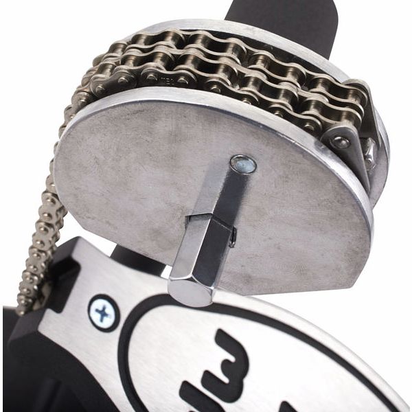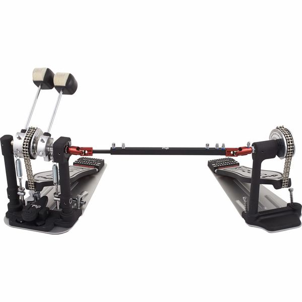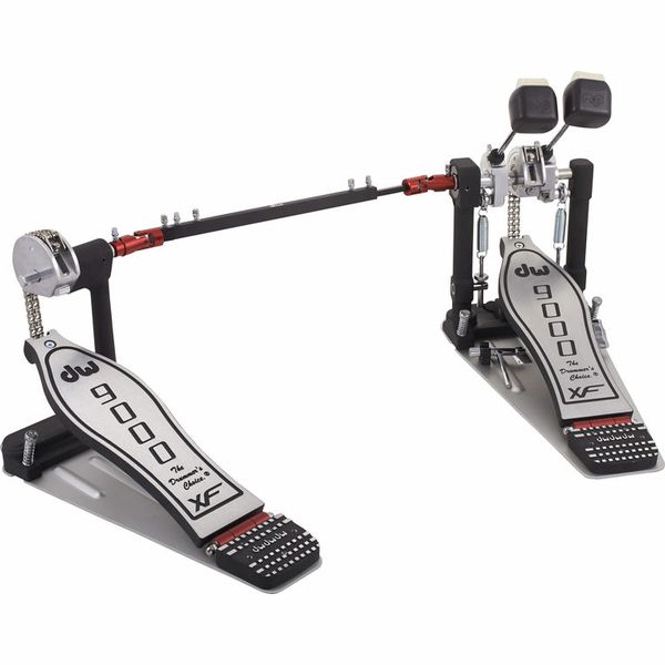 DW 9002 XF Double Pedal — двойная педаль для бас-барабана с удлинённой платформой. Конструкция основана на подшипниковой архитектуре: шарнир Delta на шарикоподшипниках, пружинная подвеска с качающимся механизмом на подшипниках, а также узел оси и привод колотушек на шарикоподшипниках. Система EZ Infinite Adjustable Cam позволяет выбирать между 2 режимами работы привода. Педаль оснащена трёхточечным зажимом Tri-Pivot Toe Clamp для надёжной фиксации на обруче, функциями памяти всех регулировок и прорезиненной нижней пластиной для устойчивости. Возможна конверсия привода с двойной цепи на ремень (в комплекте).