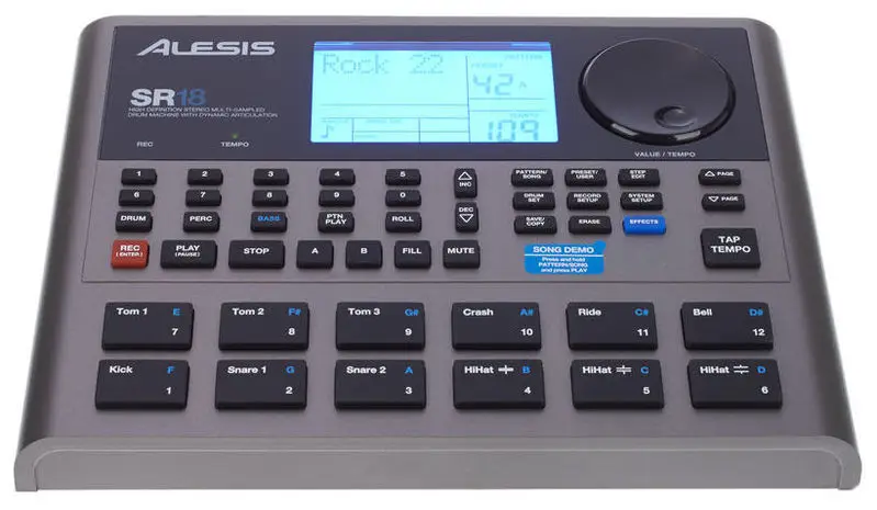 Звуки при этом располагаются в десяти предустановленных наборах ударных с целью моментального доступа в процессе выступления. Каждый звук имеет свой непосредственный доступ к панорамированию, высоте тона, реверберации. Следует отметить полнейшую совместимость с любым MIDI-оборудованием, большие коммутационные возможности и способность загружать любое желаемое количество пользовательских сэмплов с обыкновенной SD-карты памяти. Alesis SamplePad Pro по праву может считаться усовершенствованной версией предыдущей модели SamplePad.