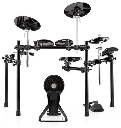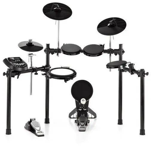Установка модели ALESIS DM LITE KIT имеет все необходимые барабаны и тарелки, которые очень легко закрепить на раме с четырьмя перекладинами.
