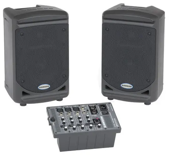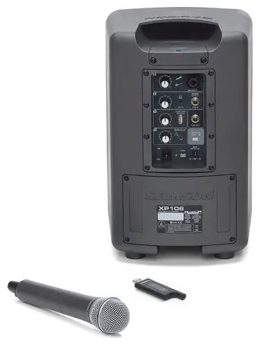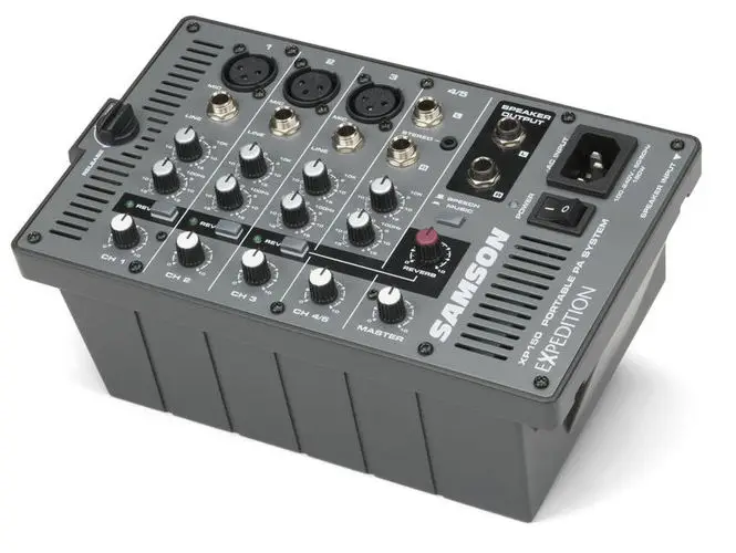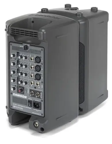 Активный монитор XP360B Expedition Express. Работает бесперебойно от аккумулятора на протяжении 8ми часов. "На борту" установлен 3х-канальный микшер и имеется возможность управления по каналу беспроводной связи Bluetooth. Корпус изготовлен из полипропилена, в комплекте есть адаптер для зарядки.