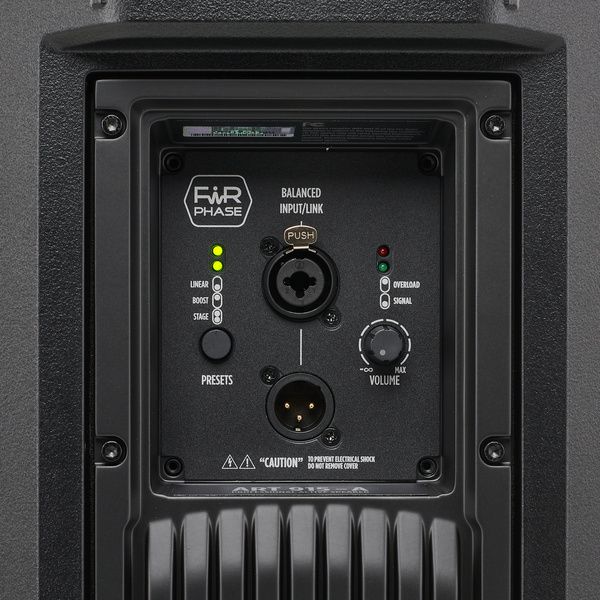 RCF ART 915-A — активная двухполосная акустическая система. Модель сочетает 15-дюймовый НЧ-динамик с 2,5-дюймовой звуковой катушкой, компрессионный драйвер 1,75" с куполом из полиамида и усилитель класса D мощностью 2100 Вт. Конструкция обеспечивает звуковое давление до 131 дБ, линейный частотный диапазон 45–20000 Гц и стабильное покрытие 100°×60°. Корпус выполнен из композитного полипропилена с внутренним армированием M-brace. Такое решение исключает вибрации и резонансы, увеличивает механическую прочность и улучшает демпфирование даже при максимальной громкости. Акустическая решетка из стали защищает динамики и вентиляционные отверстия, а многочисленные точки подвеса и стандартный 35-миллиметровый адаптер обеспечивают различные варианты установки — на стойку, стену или в подвесной конфигурации. Технология Bass Motion Control заменяет традиционный высокочастотный фильтр алгоритмом, который ограничивает только чрезмерные ходы диффузора, сохраняя линейность отклика и целостность баса при высокой громкости. Технология FiRPHASE использует линейно-фазовые фильтры для устранения фазовых сдвигов и минимальной задержки, обеспечивая точное стереополе и прозрачную звуковую картину. Волновод True Resistive Waveguide и оптимизированная геометрия портов создают равномерное излучение без искажений, с натуральным и стабильным звучанием в широком угловом диапазоне. Все динамики разработаны инженерами RCF в Италии и проходят 200-часовой стресс-тест на непрерывной нагрузке, что гарантирует надёжность и долговечность системы. Охлаждение реализовано пассивно, через алюминиевый радиатор, интегрированный в корпус без использования вентиляторов. Входной каскад выполнен с низким уровнем искажений и оснащен продвинутым лимитером, сохраняющим естественный характер сигнала при любых уровнях. Источник питания на основе импульсного преобразователя обеспечивает высокую эффективность при малом весе. Все компоненты усилителя соответствуют стандарту безопасности EN62368-1.