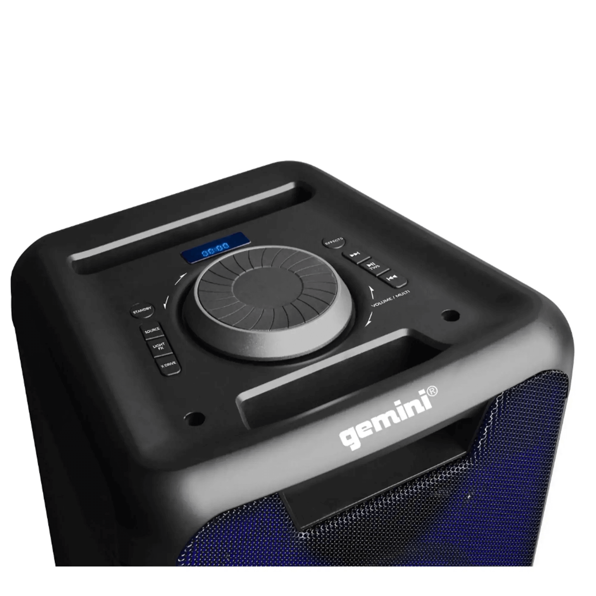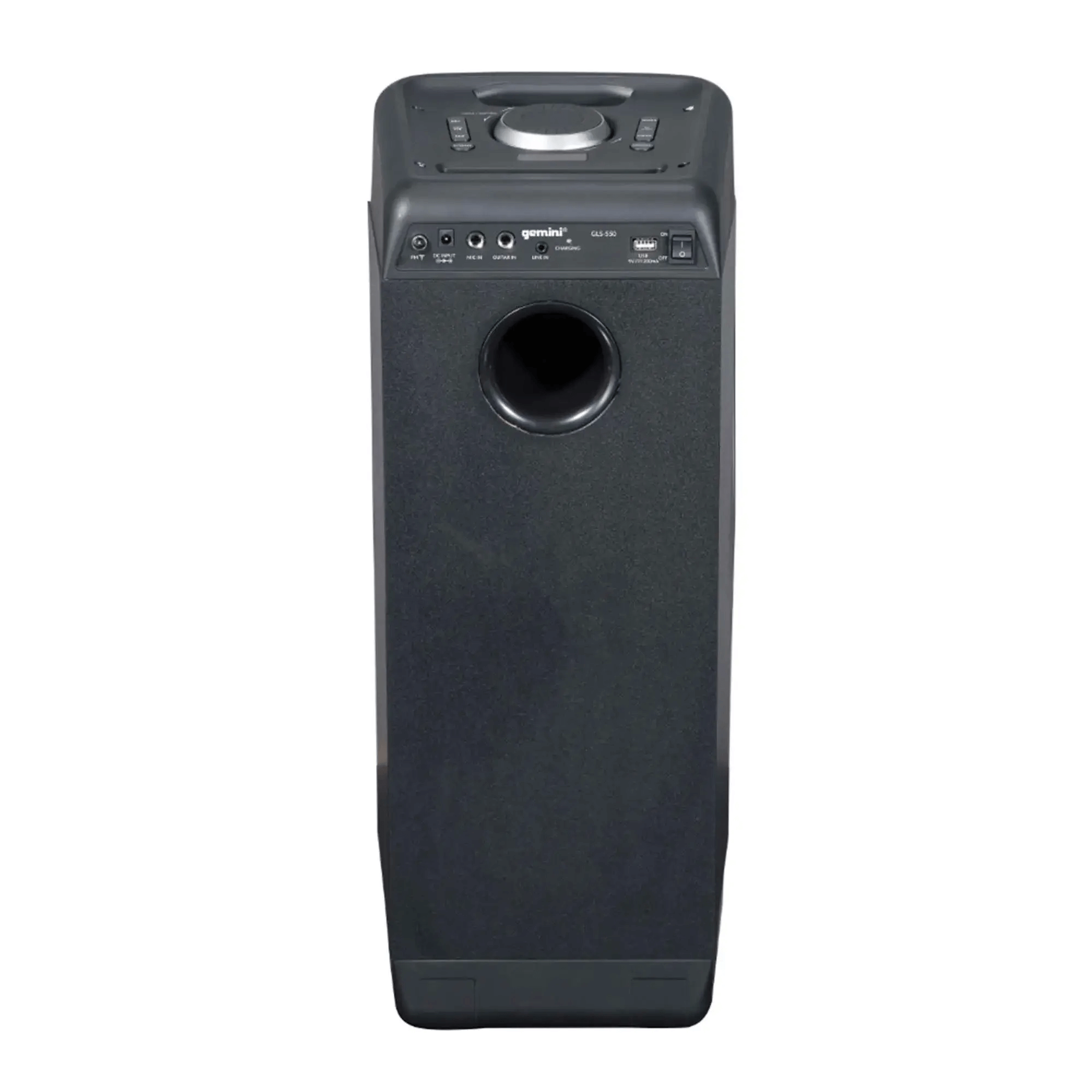 Gemini GLS-550 — портативная акустическая система c Bluetooth и пиковой мощностью 800 Вт, оснащенная двумя 6.5-дюймовыми низкочастотными вуферами и одним 1-дюймовым высокочастотным твитером. Поддерживает воспроизведение через Bluetooth, FM-радио и USB. Для живых выступлений предусмотрены отдельные входы для микрофона и гитары с регуляторами эквалайзера. Устройство обладает четырьмя режимами многоцветной LED-подсветки с синхронизацией по ритму. Встроенный аккумулятор обеспечивает до 16 часов автономной работы, а в комплект входит пульт дистанционного управления.