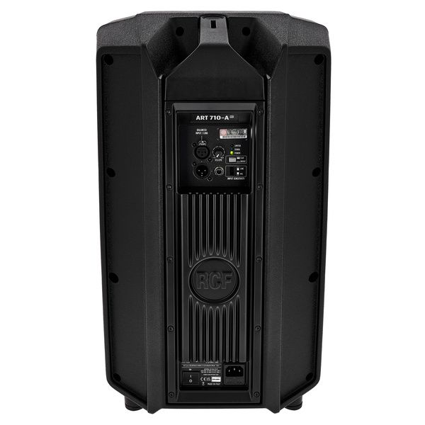 RCF Art 710-A MK V — двухполосная активная акустическая система пятого поколения. Модель предназначена для использования в качестве основной системы звукоусиления (PA) или напольного сценического монитора в клубах, на концертных площадках и мобильных мероприятиях. Конструкция базируется на 10-дюймовом вуфере с 2,5-дюймовой звуковой катушкой и 1-дюймовом компрессионном драйвере с катушкой 1,75 дюйма. Литой корпус из композитного полипропилена эффективно гасит нежелательные вибрации, а современный DSP-процессор с технологиями FiRPHASE и XBOOST обеспечивает фазовую линейность и глубокий, контролируемый бас без искажений даже на предельных уровнях громкости.