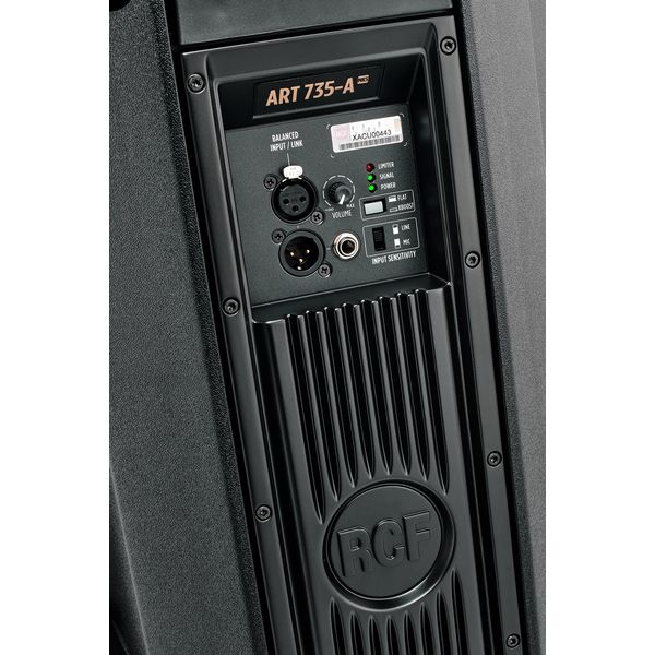 RCF Art 735-A MK V — двухполосная активная акустическая система. Модель предназначена для живых выступлений, клубов и использования в профессиональных туровых комплектах. Главной особенностью конструкции является использование крупного неодимового компрессионного драйвера ND840 с 3-дюймовой катушкой, что позволило снизить частоту кроссовера до 800 Гц для максимально точного воспроизведения средних частот и вокала. Мощный 15-дюймовый вуфер в сочетании с алгоритмом XBOOST обеспечивает глубокий и плотный бас, а корпус из композитного полипропилена с тремя ручками делает систему удобной для интенсивной эксплуатации.