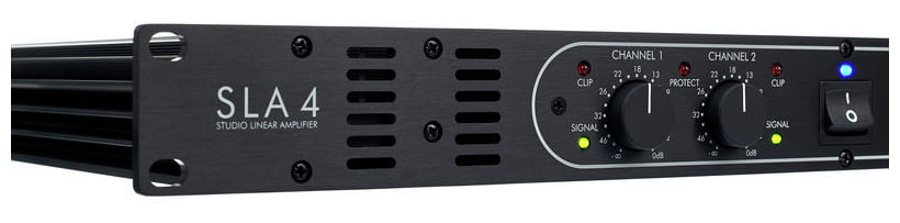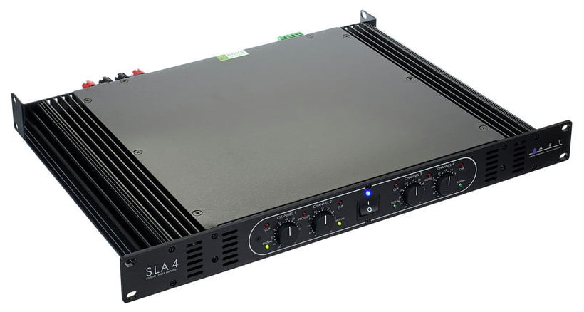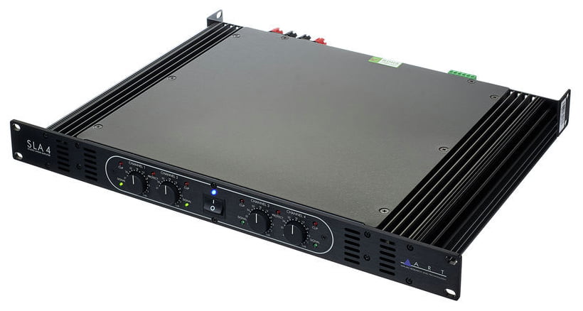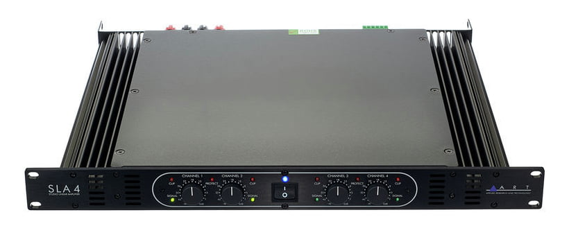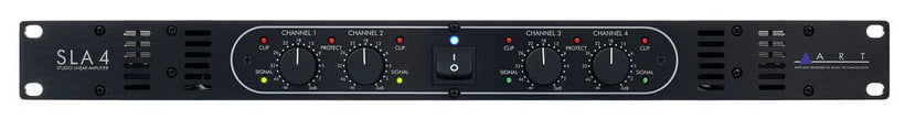 ART SLA-4 — четырёхканальный усилитель мощности в формате 1U. Модель развивает 100 Вт на канал при 8 Ом и 140 Вт на канал при 4 Ом, а при мостовом подключении каждой пары каналов мощность достигает 280 Вт на 8 Ом. Широкий частотный диапазон 10 Гц – 40 кГц и низкий уровень шума обеспечивают чистое и детализированное звучание.Каждый канал имеет отдельный регулятор громкости и светодиодную индикацию сигнала, клиппинга и перегрева. Для подключения предусмотрены балансные входы XLR и TRS, а также клеммные разъёмы Euroblock и Binding Post. Встроенная система охлаждения SmartFan автоматически регулирует скорость вентилятора, поддерживая тихую работу. Усилитель оснащён тороидальным трансформатором и выполнен в прочным металлическим корпусом.