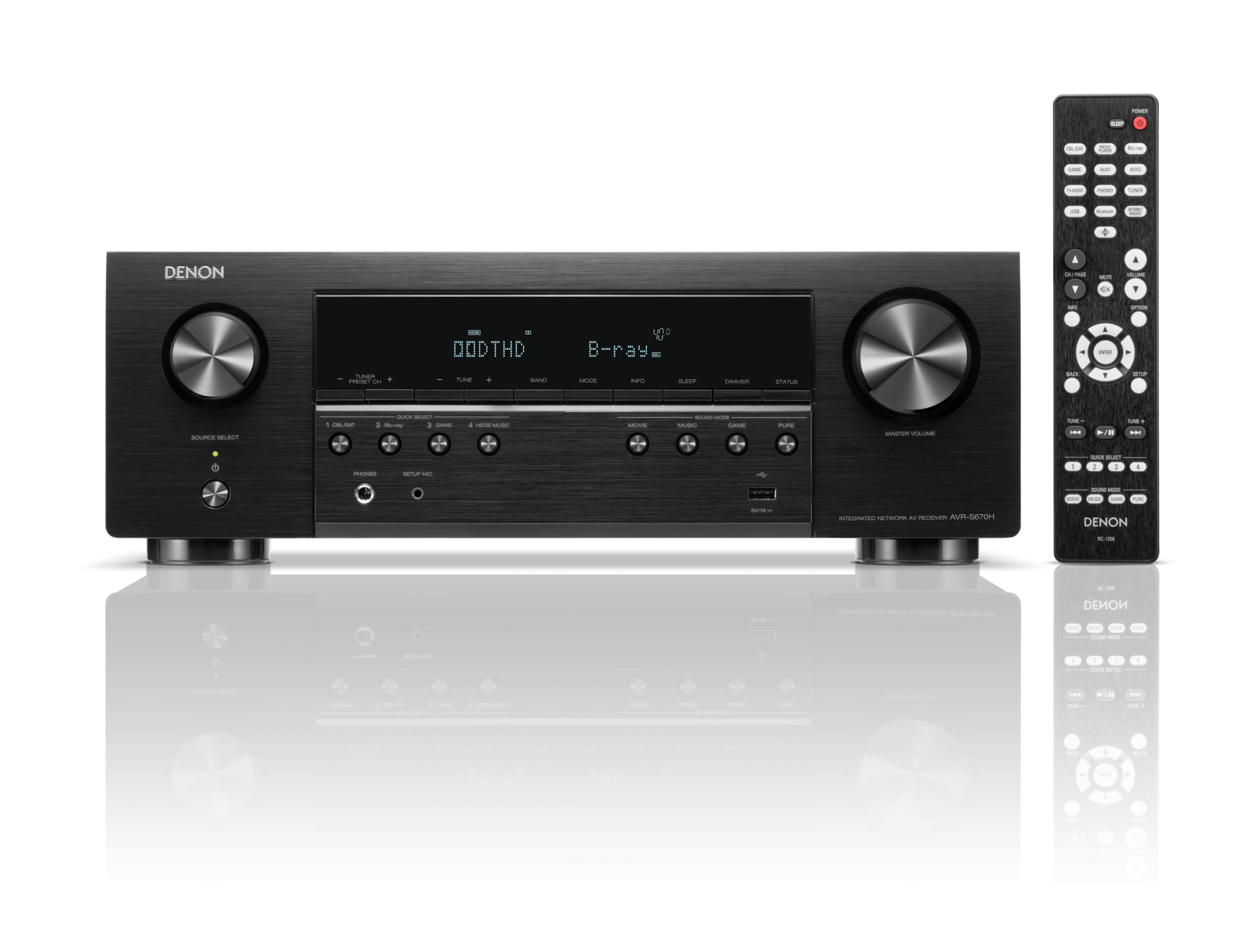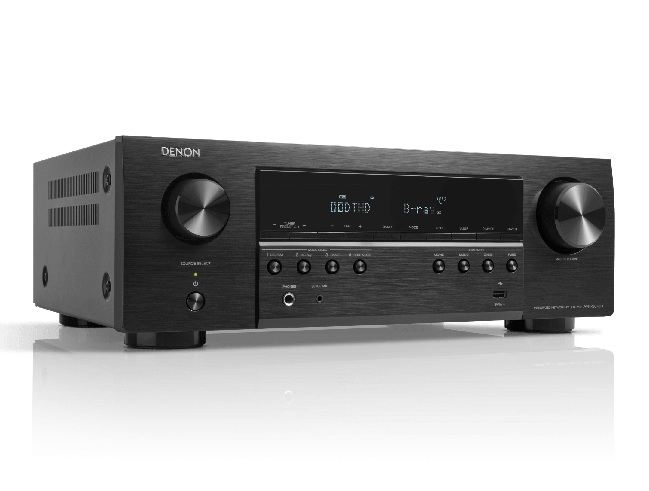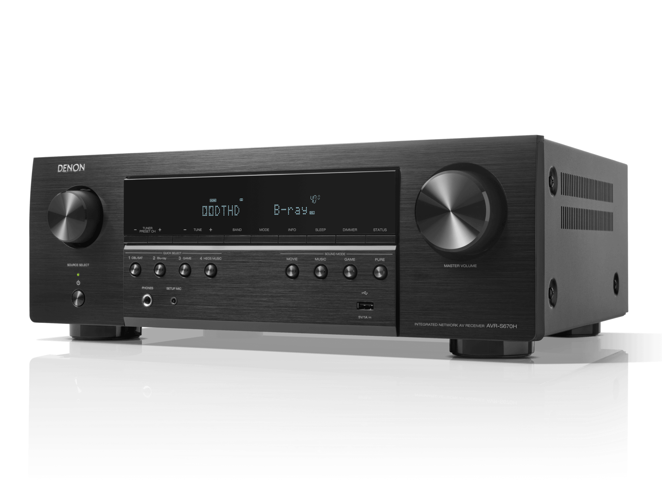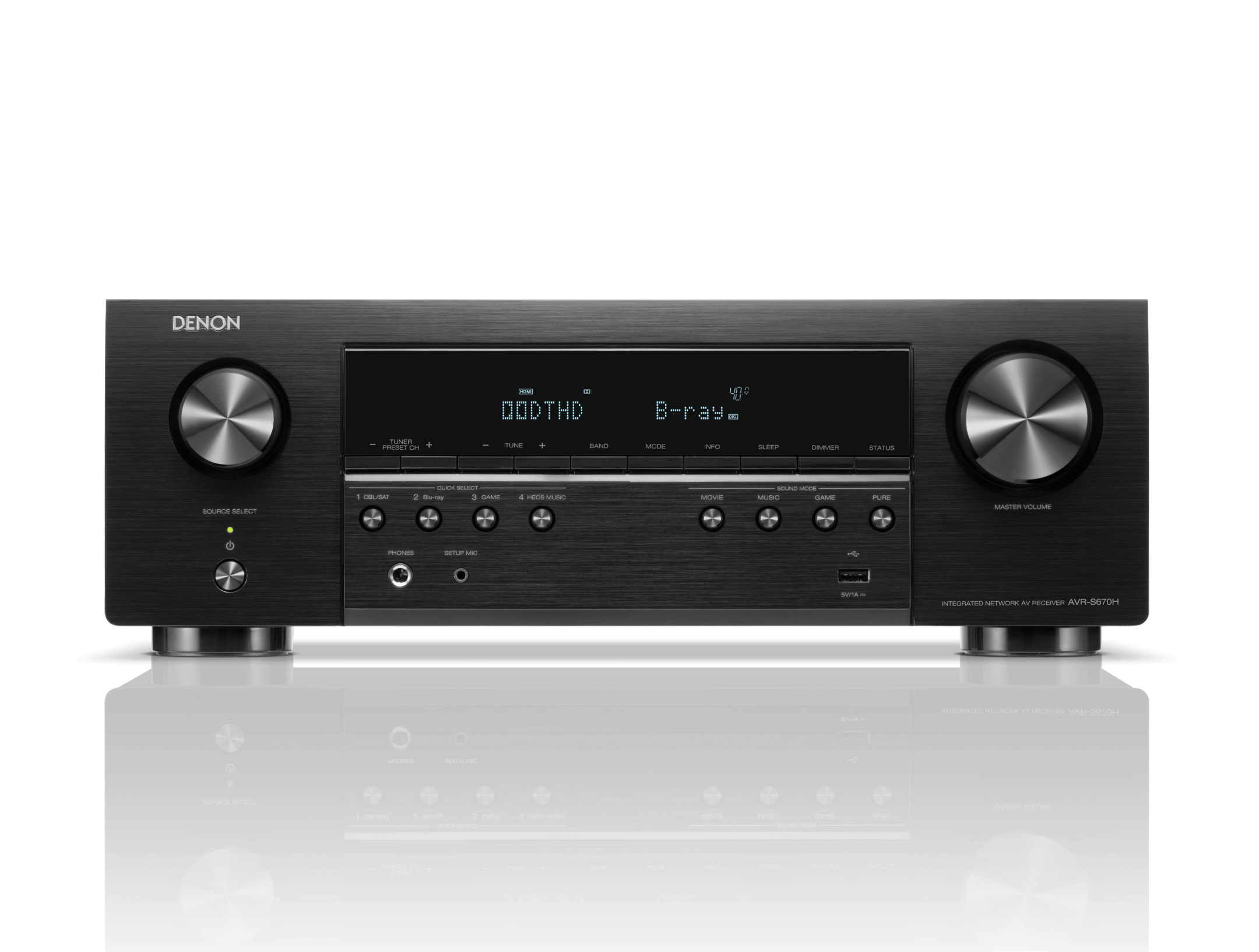 Denon AVR-S670H — 5.2-канальный AV-ресивер, предназначенный для домашних кинотеатров с поддержкой 8K/60 Гц и 4K/120 Гц видеосигнала. Устройство обеспечивает динамичное, детализированное звучание и высокую четкость изображения благодаря дискретной архитектуре усилителей, фирменной технологии Audyssey MultEQ и широким возможностям подключения. Конструкция усилителя основана на пяти дискретных каналах с мощностью 75 Вт (8 Ом, 20 Гц–20 кГц, 0,08% THD). Поддержка Dolby TrueHD и DTS-HD гарантирует реалистичное пространственное звучание, а наличие двух выходов на сабвуфер обеспечивает равномерное распределение низких частот. Интеграция HEOS Built-in позволяет транслировать потоковое аудио через Wi-Fi, Bluetooth или Ethernet, а также объединять ресивер с другими устройствами HEOS в мультирум-систему. Поддержка AirPlay 2, Spotify Connect, Tidal, Deezer и Amazon Music расширяет возможности беспроводного воспроизведения. HDMI-подсистема построена на шести входах (три из которых поддерживают 8K) и одном выходе с поддержкой eARC, VRR, ALLM и HDR10+, обеспечивая бесшовную интеграцию с современными источниками видеосигнала, включая игровые консоли и медиаплееры. Управление осуществляется через приложение Denon AVR Remote (Android/iOS), голосовых ассистентов Alexa, Google Assistant и Siri, а также через интерфейс Setup Assistant с HD-графикой. В комплекте идут: пульт дистанционного управления RC-1258, микрофон Audyssey для автоматической калибровки, антенны Wi-Fi/Bluetooth, кабель питания.