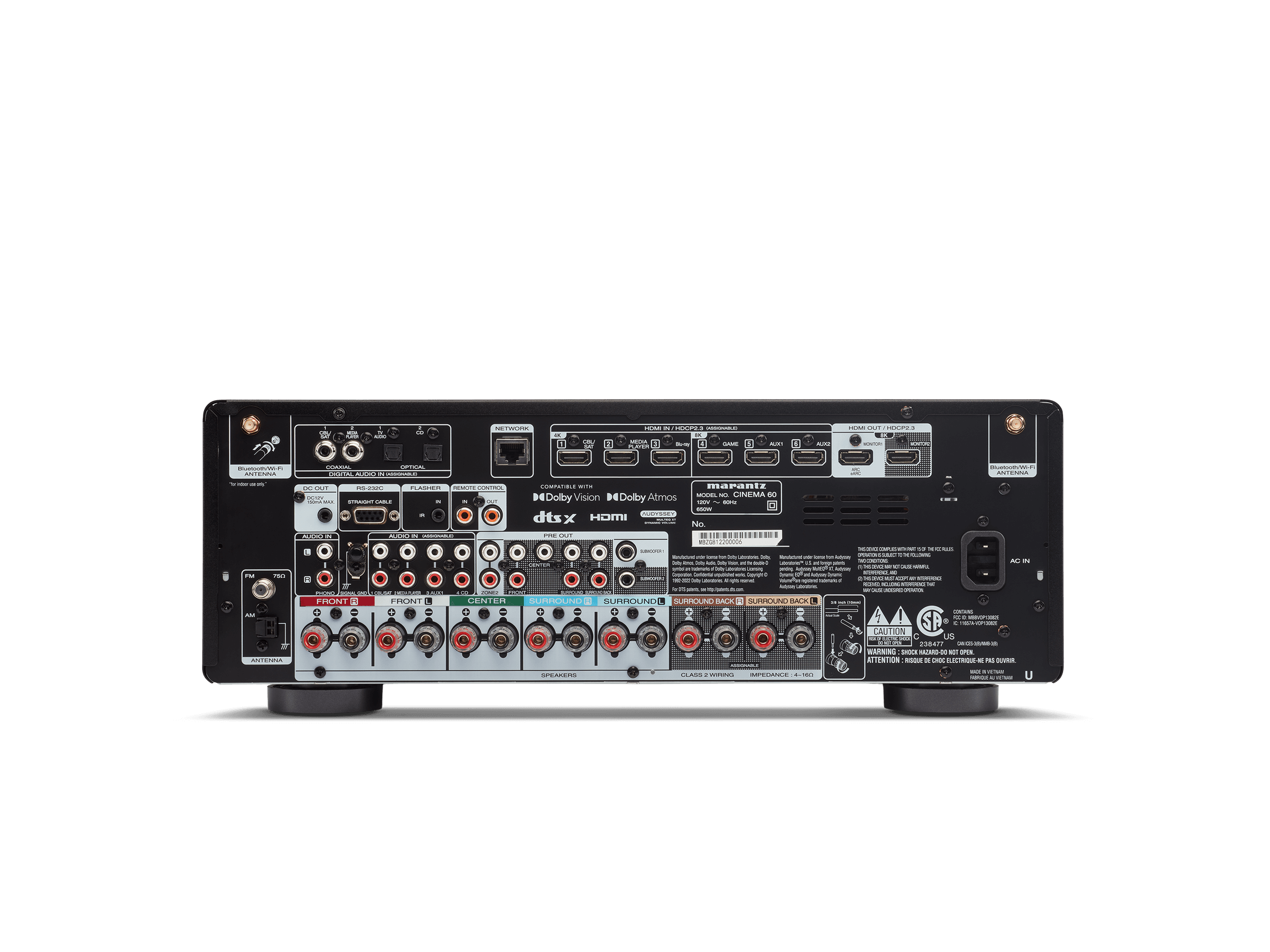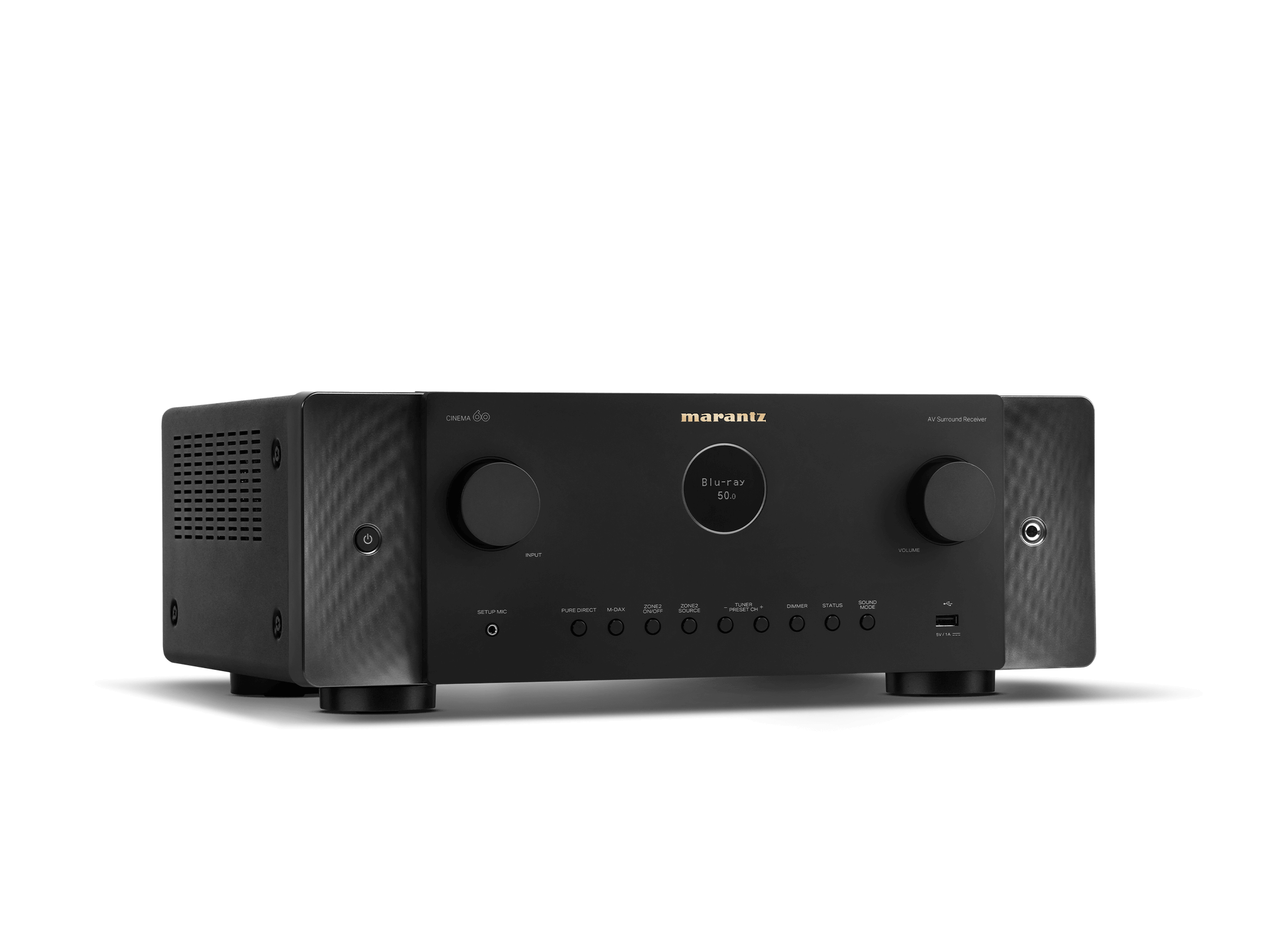 Marantz CINEMA 60 Black — 7.2-канальный AV-ресивер. Построен на дискретных модулях HDAM SA2 (Hyper Dynamic Amplifier Module). Усилители построены по схеме класса A/B с симметричной топологией. Цифроаналоговое преобразование реализовано на базе 32-битных ЦАП, оптимизированных для многоканальных потоков PCM и DSD, а сама архитектура питания использует тороидальный трансформатор с раздельными обмотками для цифровых и аналоговых трактов, что исключает паразитные наводки и стабилизирует работу при высоких нагрузках. Ресивер поддерживает конфигурации Dolby Atmos и DTS:X, а также режим Auro-Matic. Cinema 60 выполнен в алюминиевом корпусе с фирменным овальным дисплеем, FL-индикатором. Внутренняя компоновка строго симметрична, шасси имеет анти-резонансное основание и демпфирующие опоры для снижения вибраций. Теплоотвод выполнен из алюминия с улучшенным охлаждением, а воздушные потоки рассчитаны для длительной стабильной работы всех каналов при высокой нагрузке. Модель поддерживает HDMI 2.1 на всех основных входах, обеспечивает полную совместимость с 8K/60 Гц и 4K/120 Гц сигналами, а также работает с HDR10+, Dolby Vision и Dynamic HDR. Помимо основной зоны, ресивер может обслуживать вторую зону аудио, а встроенная система HEOS Built-in дает возможность работы с потоковым воспроизведением по Wi-Fi, AirPlay 2 и Bluetooth. В комплекте идет пульт дистанционного управления.
