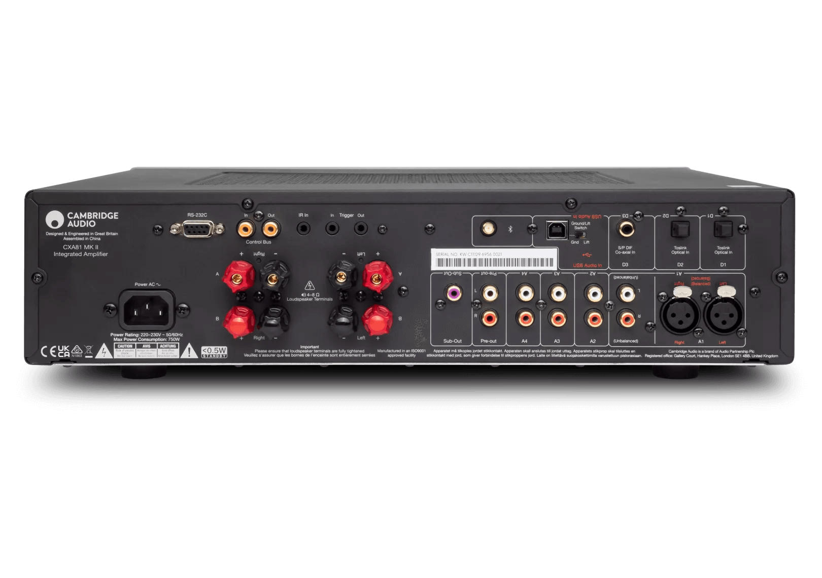 Cambridge Audio CXA81 MkII Lunar Grey — интегрированный усилитель класса AB с полностью симметричной схемотехникой и переработанным аналоговым трактом. Обеспечивает мощность 80 Вт на канал при нагрузке 8 Ом и 120 Вт при 4 Ом, сохраняя низкий уровень искажений и высокий динамический диапазон. В конструкции применён ЦАП ESS Sabre ES9018K2M с 32-битной обработкой и малым уровнем джиттера, обеспечивающий точную передачу микродеталей и пространственной глубины. Усилитель оснащен балансными входами XLR, четырьмя линейными RCA-входами, цифровыми интерфейсами USB, коаксиальным и оптическим входами, а также модулем Bluetooth с поддержкой aptX HD. Корпус выполнен из алюминия с усиленным шасси для повышения жесткости и защиты от вибраций. Питание реализовано на базе тороидального трансформатора с низким уровнем шума и увеличенным токовым запасом для стабильной работы при пиковых нагрузках.