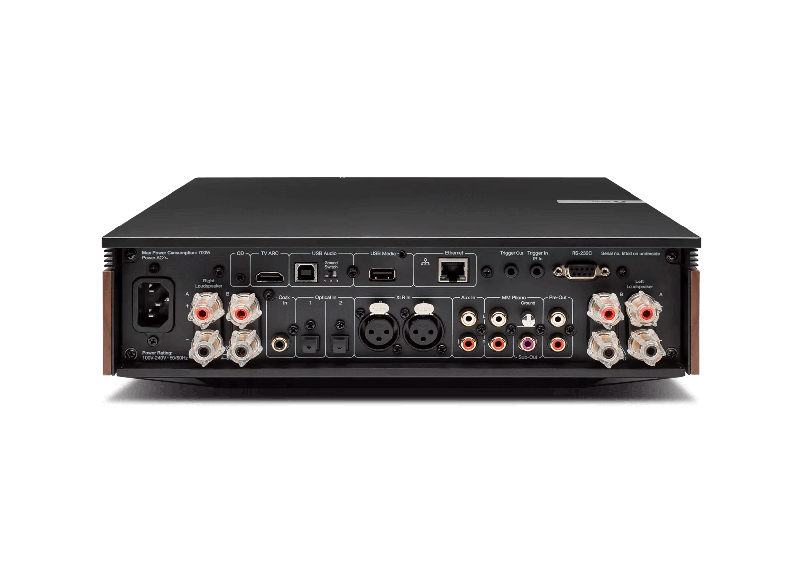 Cambridge Audio Evo 150 Black — интегрированный сетевой усилитель с модулем усиления Hypex Ncore класса D, выдающий 150 Вт на канал при нагрузке 8 Ом (и 250 Вт при 4 Ом). Это старшая модель в серии Evo, оснащенная ЦАП ESS Sabre ES9018K2M. Усилитель объединяет функции стримера, предусилителя и усилителя мощности в одном корпусе. В конструкции применены балансные входы XLR, фонокорректор для MM-картриджей, а также полноценный HDMI eARC. Корпус выполнен из алюминия с антивибрационным шасси и съемными панелями. Частотный диапазон 20 Гц – 20 кГц, уровень гармонических искажений не превышает 0,00045 %, а соотношение сигнал/шум достигает 113 дБ.