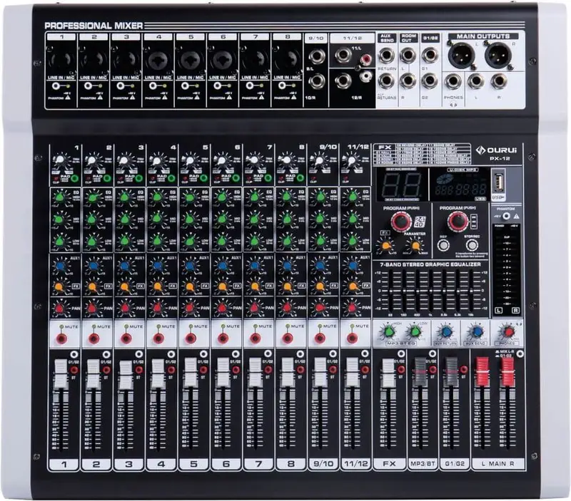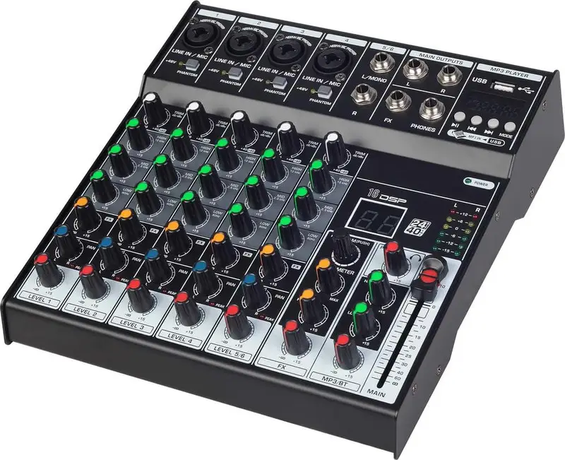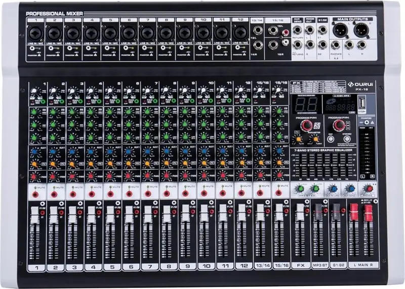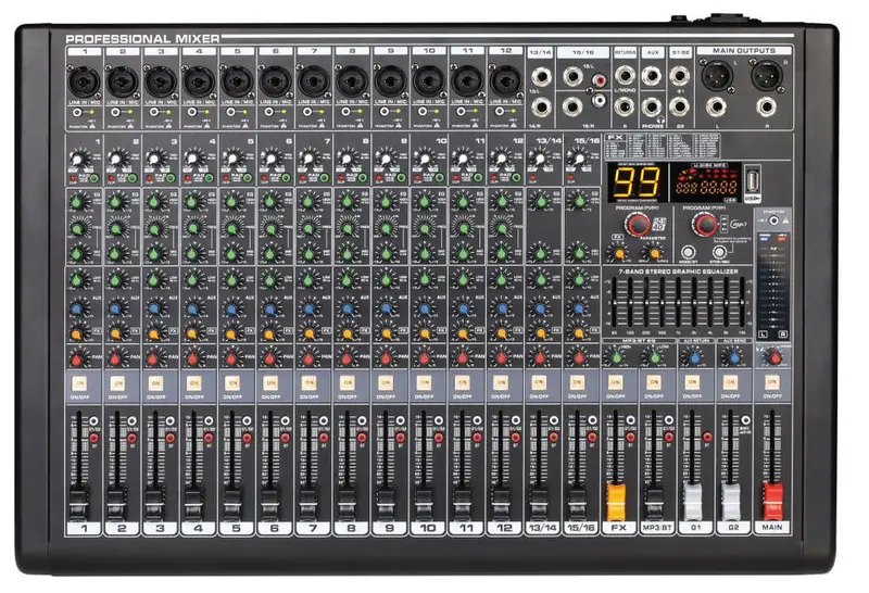 LAudio AN-32 — 32-канальный аналоговый микшер из серии PRO, оснащённый 28 комбинированными входами Line/Mic (XLR/TRS) и дополнительными стерео входами Line. Каждый канал имеет 3-полосный эквалайзер, 60-мм фейдер, а также функции Solo и Mute. Поддерживается фантомное питание +48 В для подключения конденсаторных микрофонов. Встроенный цифровой MP3-плеер работает с USB-накопителями и Bluetooth, поддерживается функция записи на USB. 99 встроенных эффектов позволяют применять обработку в реальном времени, а 9-полосный графический эквалайзер даёт гибкий контроль над выходным сигналом. Пульт оснащён основным стереовыходом, выходом aux, выходом на наушники и выходом эффекта.