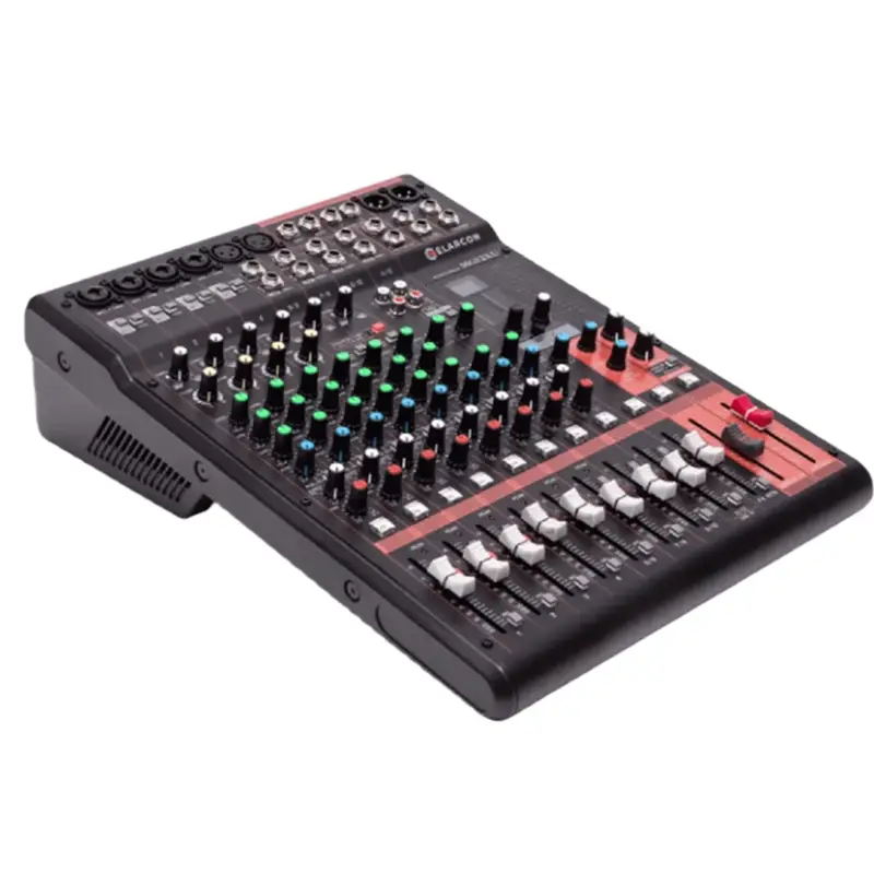 ELARCON MG6XU — 6-канальный микшерный пульт с USB Audio интерфейсом и встроенными эффектами. Пульт имеет 2 микрофонных и 6 линейных входов (2 моно и 2 стерео), что позволяет подключать множество источников звука одновременно. Встроенные эффекты SPX включают 6 программ. Пульт оснащен 1 стерео шиной. Микрофонные предусилители D-PRE обеспечивают чистый и насыщенный звук, а встроенный USB аудиоинтерфейс 2×2 позволяет подключаться к компьютеру. ELARCON MG6XU выполнен в прочном металлическом корпусе. Подойдет для живых выступлений, студийной работы.