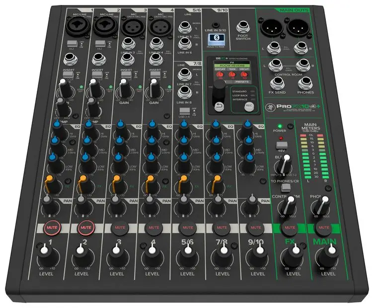 Mackie ProFX6v3+ — это профессиональный 6-канальный аналоговый микшер с USB-аудиоинтерфейсом и поддержкой Bluetooth. Оснащен двумя микрофонными предусилителями Onyx с низким уровнем шума и 2-полосным эквалайзером. GigFX™ эффекты предлагают 24 варианта настраиваемых эффектов, отображаемых на цветном LCD дисплее. Запись в 24-бит / 192 кГц с тремя режимами: Standard, Loopback и Interface. Поддержка Hi-Z для подключения инструментов и фантомное питание 48V. В комплект входит программное обеспечение Waveform OEM™.