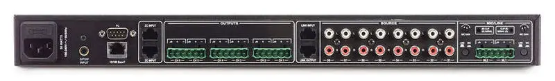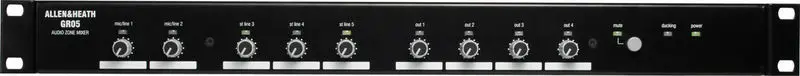 Зонный микшер, 4 XLR балансных входа, 10 XLR балансных выходов (5 зон), в каждой зоне: индикатор и регулятор уровня сигнала источников, перекл. Stereo/Mono, вх. сопротивление 47 кОм, вых. сопротивление 200 Ом, S/N >90 dB, THD 0.05%, внутр. БП 15 Вт.