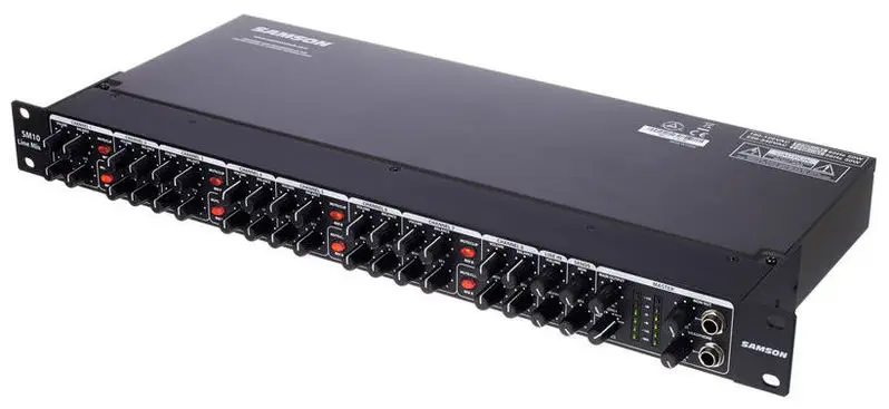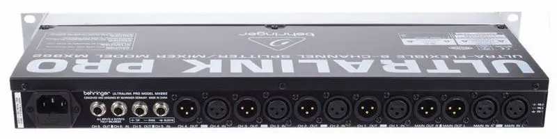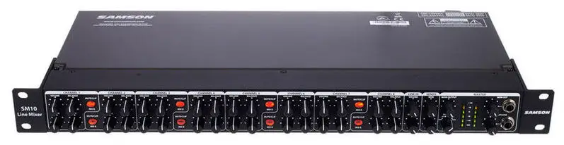 • Три балансных входа на разъемах XLR с преключаемым уровнем по сигнала микрофон/линия, регулировкой уровня и индикатором Clip на каждом канале.