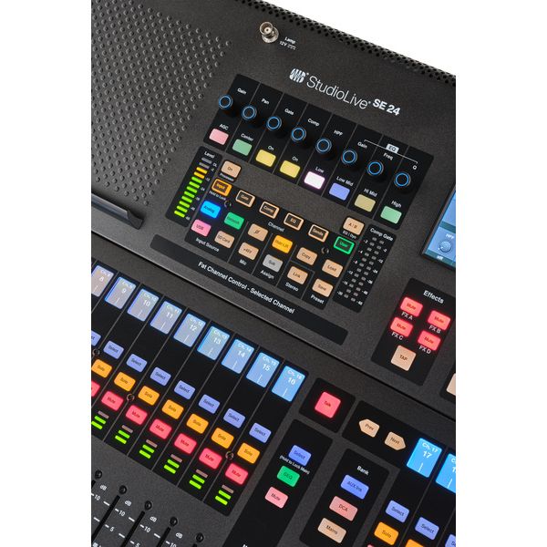 PreSonus StudioLive Series III SE 24 — многофункциональная 40-канальная цифровая консоль, разработанная как комплексное решение для живого звука, студий и инсталляций, объединяющая микшер, рекордер, сетевой AVB-узел и управляющий центр. Консоль обеспечивает высокую точность тактильного контроля за счет 25 моторизованных фейдеров, усиленной механики и контрастного плоского экрана. Вычислительная мощность основана на двухъядерном FLEX DSP Engine, который гарантирует 32-битную обработку с плавающей точкой и неограниченное использование всех динамических модулей, продвинутых ревербераторов Digital Reverb XL и модулей Fat Channel. Консоль оснащена 33 предусилителями XMAX-Remote с чистым аналоговым трактом и функцией цифрового "Recall". Функции записи включают встроенный SD-рекордер для многоканальной записи (24 бит/48 кГц) и USB-аудиоинтерфейс 64 x 64, идеально подходящий для «One-Click Virtual Soundcheck» с программами Capture и Studio One Pro. Сетевое взаимодействие реализовано через Milan-сертифицированный AVB-порт (Neutrik etherCONN) и функцию Metro Remote Access для удаленного конфигурирования. С расширенными возможностями маршрутизации, включая FlexMix, четыре FX-шины, четыре сабгруппы и 24 DCA, StudioLive SE 24 представляет собой полноформатное решение для современного цифрового продакшена.