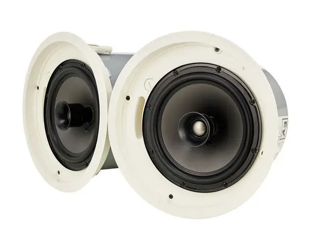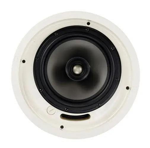 Двухполосная полнодиапазонная потолочная акустическая система небольших габаритов JBL Control 24C линейки Control Contractor оборудована 100-мм динамиком в куполе с подвесом из бутилкаучука, с 24-мм катушкой и 19-мм твитером. Она оборудуется внутри помещения, а глубина в 200 миллиметров увеличивает возможности установки и расширяет полезную площадь. Девайс защищен серым грилем из формованной стали, что позволяет ей быть практически невидимой в любом заведении.