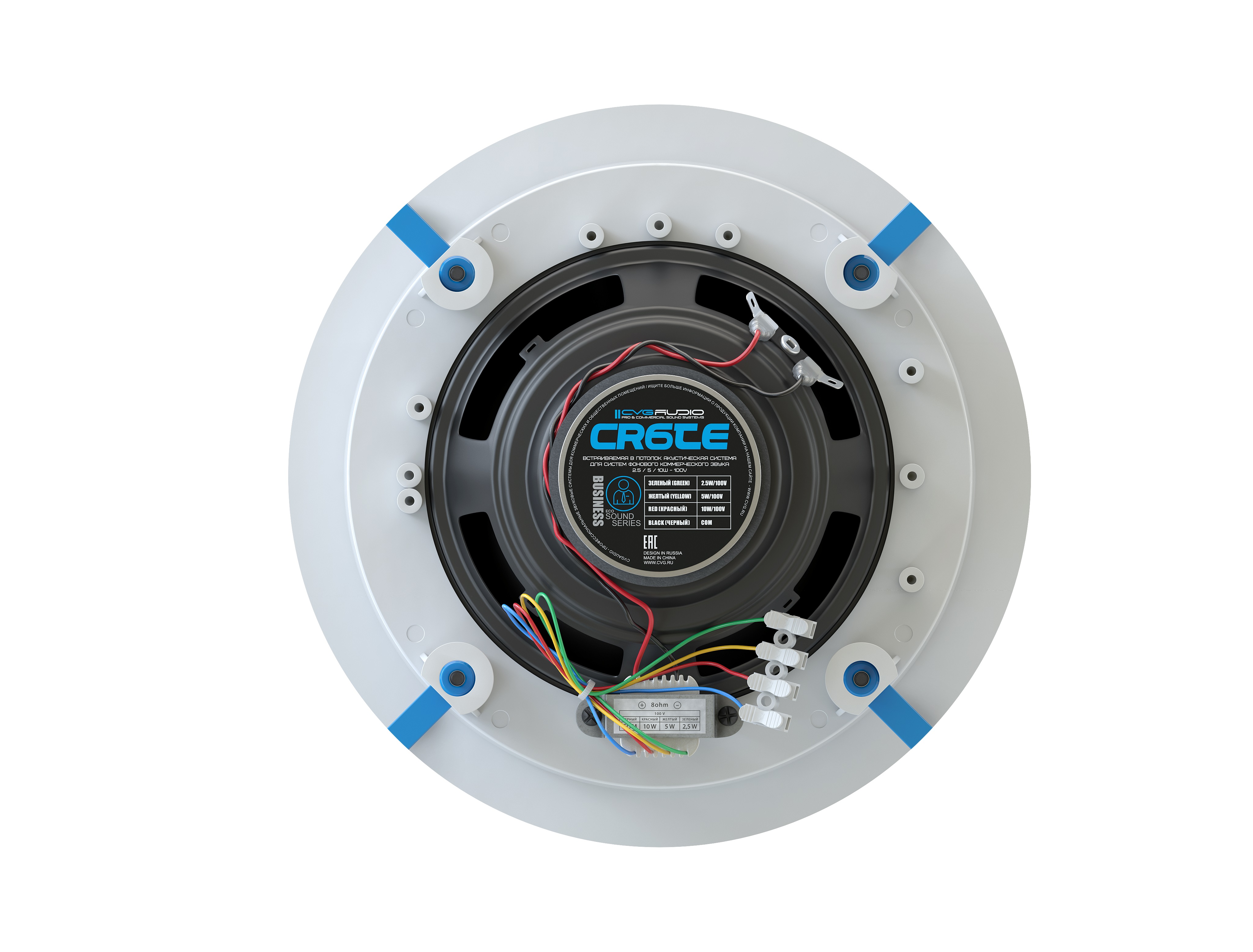 CVG CR6TE — двухполосная потолочная акустическая система серии CR, предназначенная для использования в 100-вольтовых трансляционных линиях. Модель оснащена 6,5-дюймовым (165 мм) вуфером из плотной целлюлозы и резиновым подвесом повышенной гибкости, а также 0,5-дюймовым (12,7 мм) твитером из полиэфиримида (PEI). Обновлённая версия популярной модели CR6T, CR6TE получила фильтр второго порядка, корректирующий частотную характеристику и улучшающий качество звучания в области средних и высоких частот. Корпус выполнен из прочного белого ABS-пластика, устойчивого к воздействию солнечного света, а защитная решётка изготовлена из алюминия. Конструкция снабжена надёжными винтовыми зажимами для установки в подвесной потолок толщиной от 5 до 30 мм. Встроенный трансформатор с отводами на 3, 6 и 10 Вт позволяет гибко распределять нагрузку при подключении к 100-вольтовым усилителям CVGaudio серий AM, AT, ATP и TR. Подключение осуществляется через винтовой клеммный терминал, обеспечивающий надёжную фиксацию проводов. Диффузор защищён съёмной сеткой, а установка колонки занимает не более пяти минут. Частотный диапазон 80–18 000 Гц (±6 дБ) и чувствительность 89 дБ SPL (1 Вт/1 м).