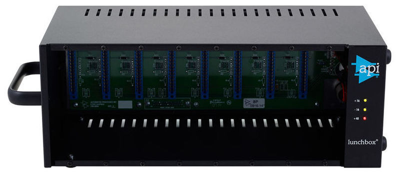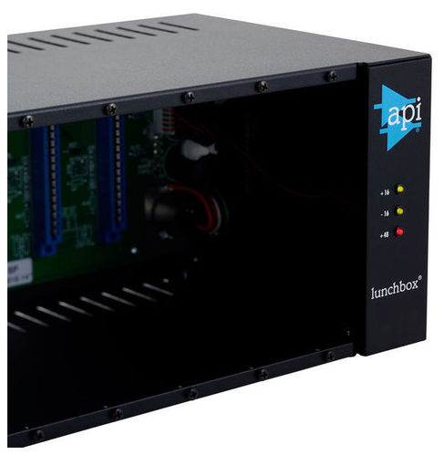API Audio 500-8P Lunchbox — профессиональный корпус формата lunchbox для модулей стандарта API 500 Series c прочным стальным шасси, интегрированным блоком питания, электрической совместимостью со всеми модулями API 500 Series и VPR-approved устройствами. Конструкция рассчитана на установку до восьми модулей одновременно. API 500-8P Lunchbox ориентирован на инженеров, которым требуется гибкость в конфигурации аналоговой обработки: микрофонные предусилители, эквалайзеры, компрессоры и специализированные процессоры могут комбинироваться в любом порядке с сохранением стандартизированной инфраструктуры питания и ввода-вывода. Каждый слот способен обеспечивать ток до 250 мА. Встроенное фантомное питание 48 В делает корпус совместимым для работы с микрофонными предусилителями без необходимости внешних источников питания. Коммутация реализована через разъёмы DB25 (D-Sub) на задней панели, что позволяет интегрировать Lunchbox в студийные патчбеи, многоканальные аудиоинтерфейсы и консольные системы. Универсальный встроенный блок питания с автоматической поддержкой сетей от 100 до 250 В обеспечивает стабильную работу в различных регионах и условиях эксплуатации. Для мобильного применения корпус оснащён резиновыми ножками и прочной ручкой для переноски, а при необходимости может быть установлен в 19-дюймовую стойку с использованием опциональных монтажных ушей.